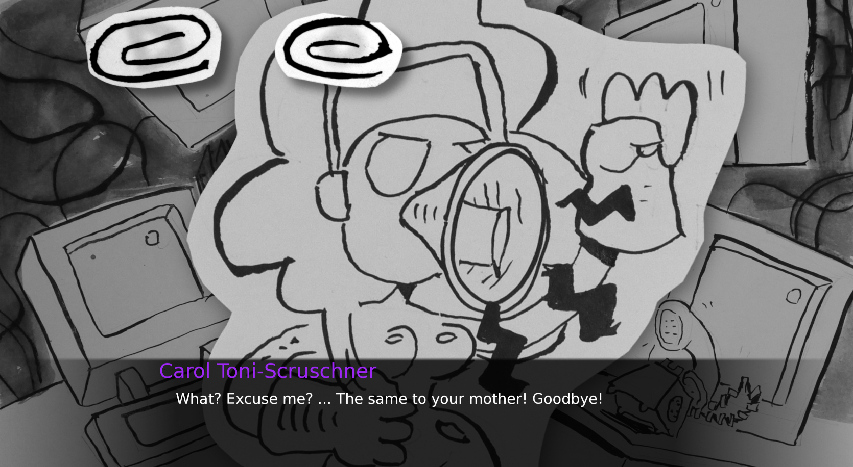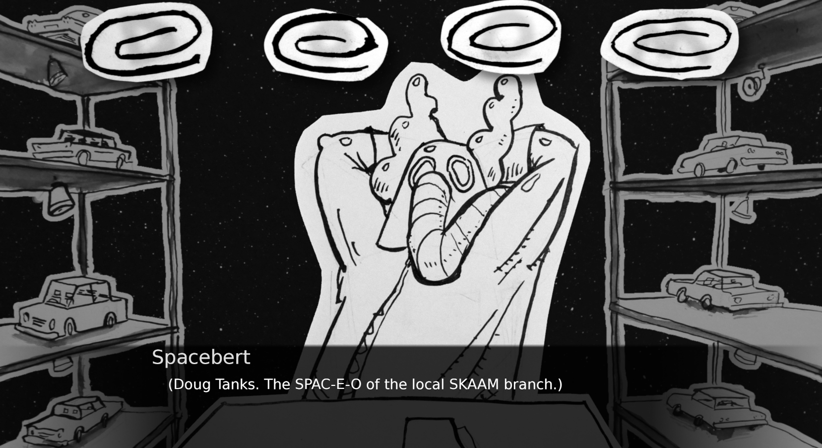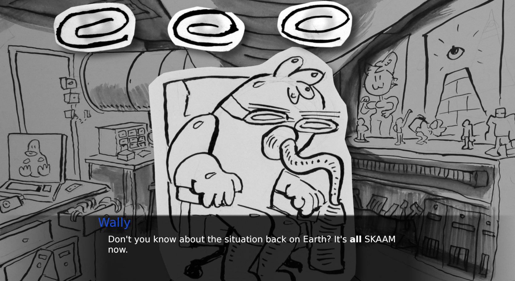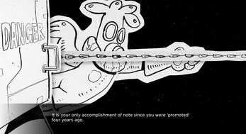 But you're going to need the help of your three splenetic colleagues: Wally, the paranoiac Chief Engineer. ROOM-0, the genius attorneybot trapped in the body of a vacuum cleaner. Carol Toni-Schrusher, the Comms Officer suffering a never-ending nervous breakdown.